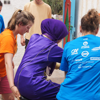 Une fois de retour à Essaouira, nous retournons à la médina. Nous faisons à nouveau un arrête chez les artisants et nous décidons d'offrir le dernier vélo à une sourde-muette qui travaille dans la joaillerie. Nous effectuons quelques achats souvenirs avant de visiter la médina avec Samad. La journée se finit dans un gymnase où nous donnons le reste du matériel sportif qu'il nous reste: des ballons offerts par le Bureau des Sports de l'ENSTIB, des cônes, des cerveaux et des cordes à sauter.